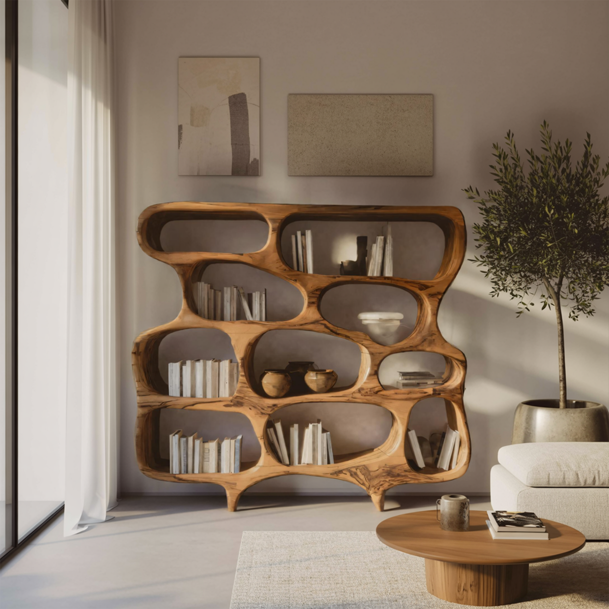 Add an expressive sculptural presence to your home with our Artistic Bookshelf With Curved Design For Living Room Interior, crafted to bring fluid form and visual rhythm into your space. This open-shelf unit combines artistic flair with everyday practicality, transforming your books and decorative pieces into part of an elegant display.